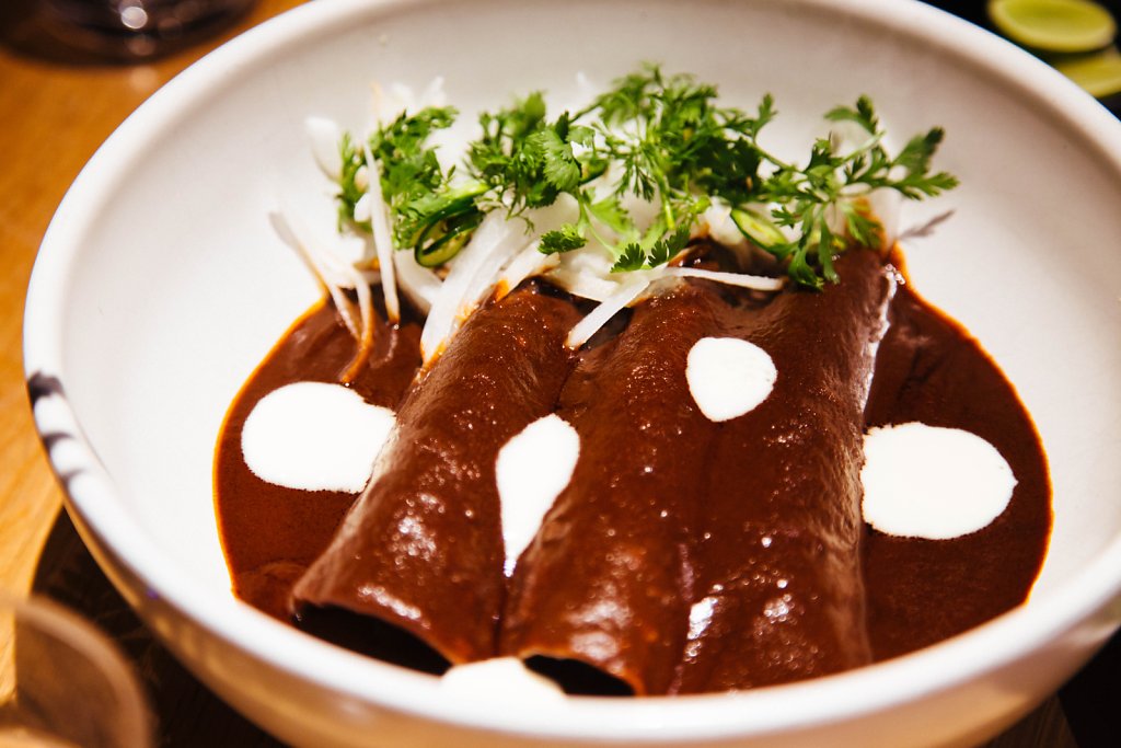 Duck enmoladas and red mole