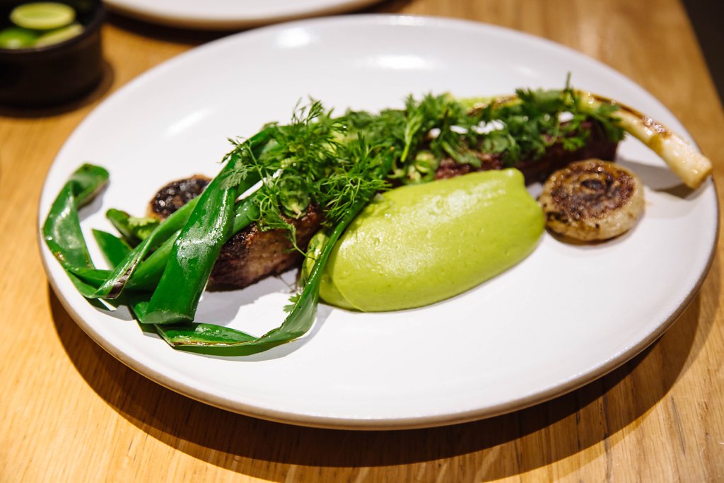 Short rib, scallions, cipollini and avocado