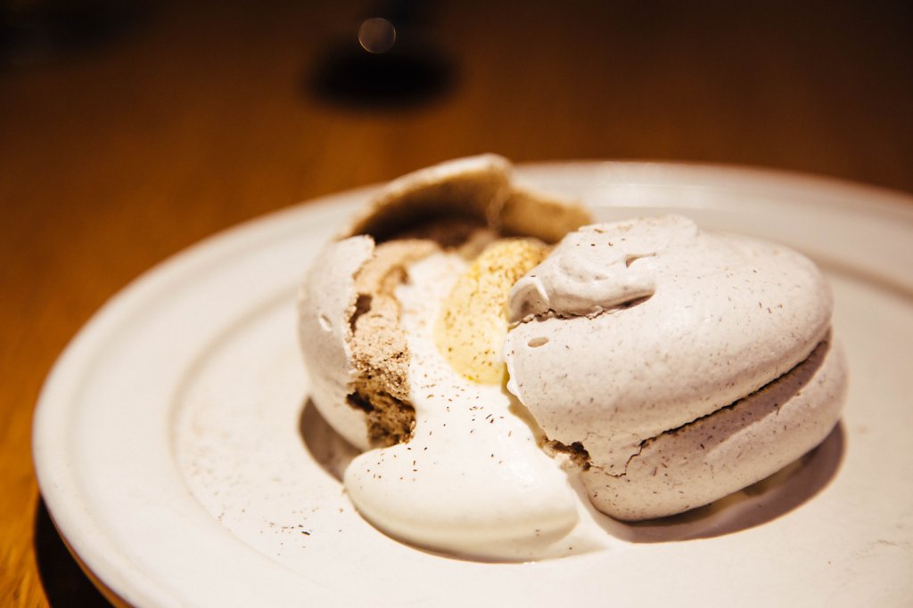 Husk meringue and corn mousse