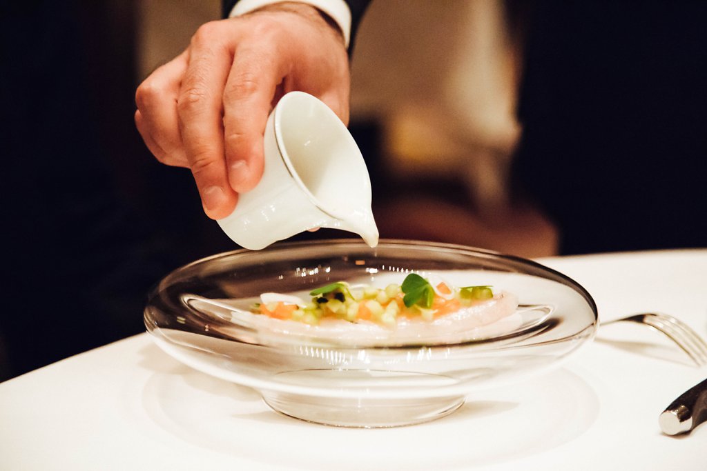 The first dish of violin zucchini is beautifully served on an impressively thick plate which looks striking. The dish is fresh, with a hint of black truffle. It's evident that almost every dish on the menu has to have at least one luxury ingredient. The restaurant is famous for using seasonal and very high quality produce, easily noticeable in all the dishes.