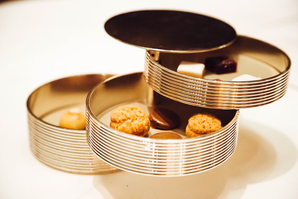The entire meal is rounded of with classic petit fours in a cleverly presented metal box.