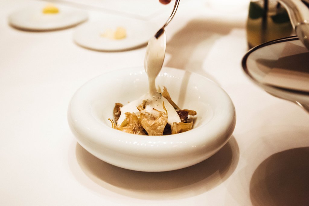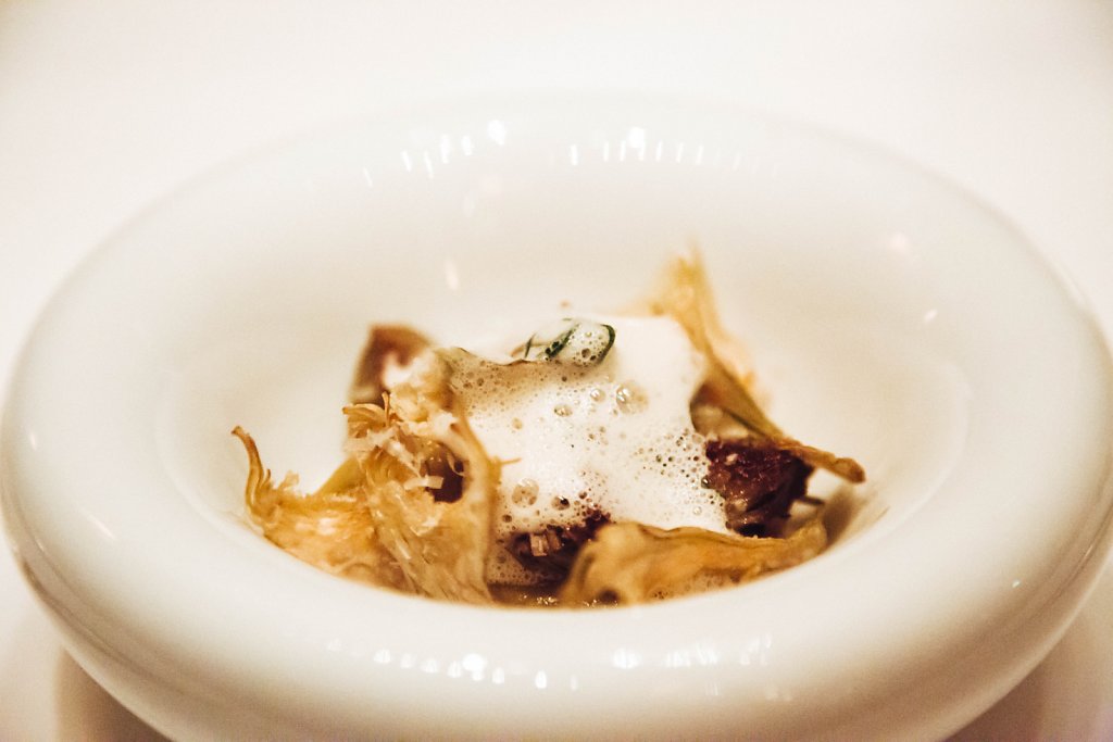 We generally don't eat foie gras, as we don't appreciate how it's produced (we're hoping more restaurants would go for humane foie gras instead). We decide to try one serving, and ask if it's possible to substitute one serving for something else, which they happily do. The foie gras dish was not worth it, and we should instead have gone for two servings of the artichoke substitute which is the first dish that seems spontaneous and "fun".